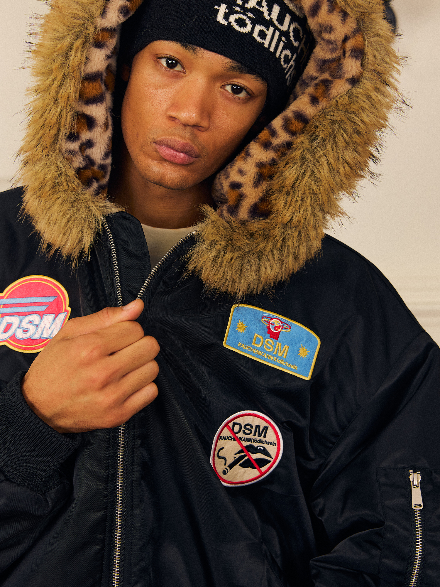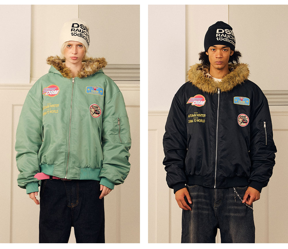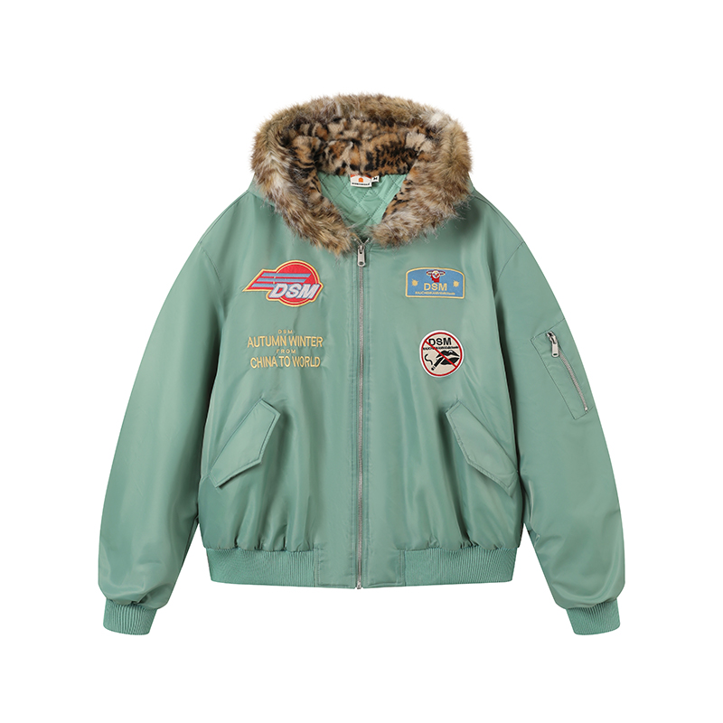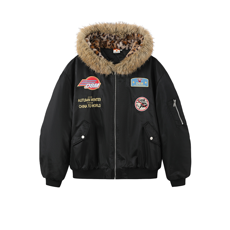 DONSMOKE Leopard Print Hooded Flight Jacket