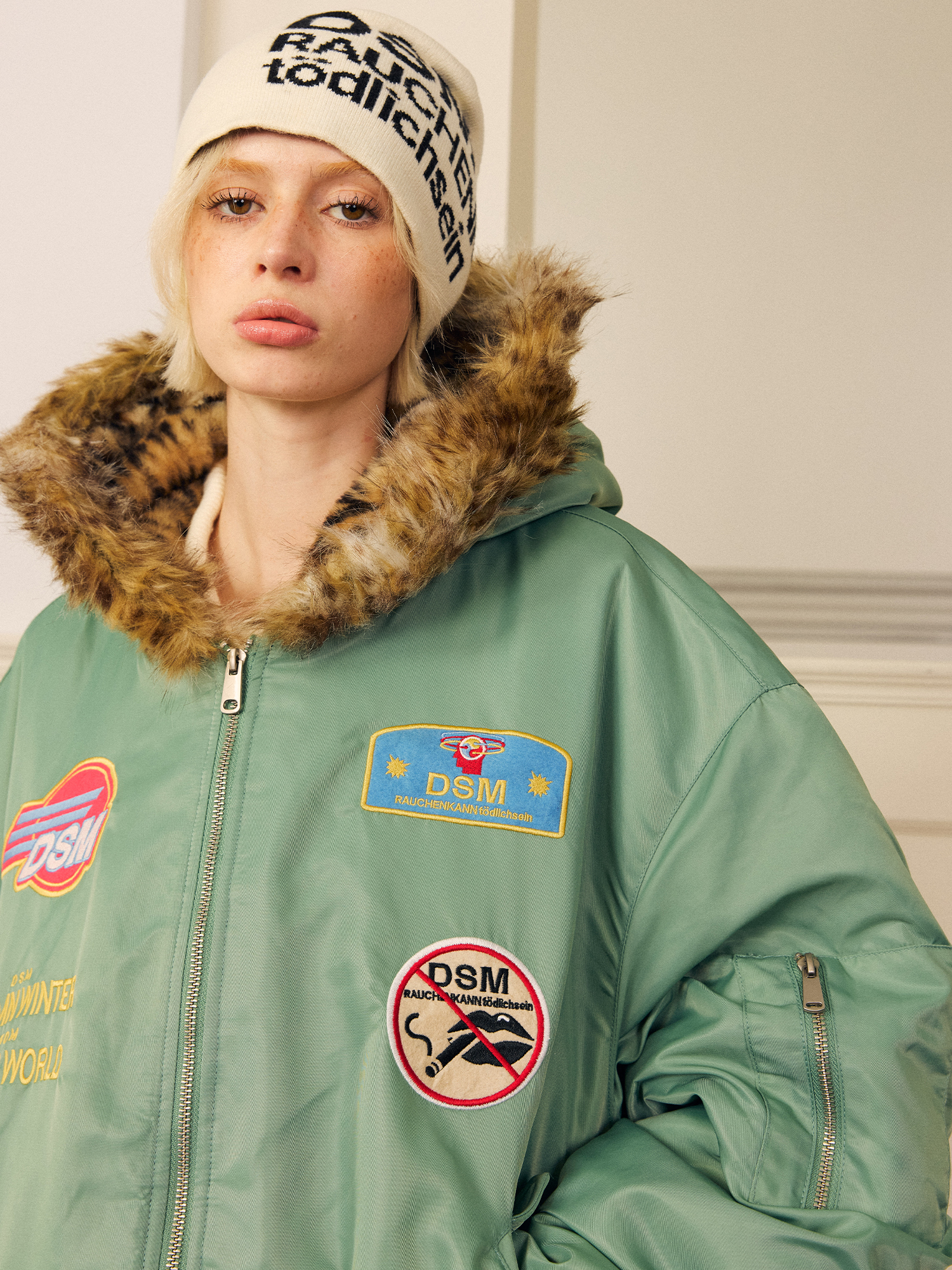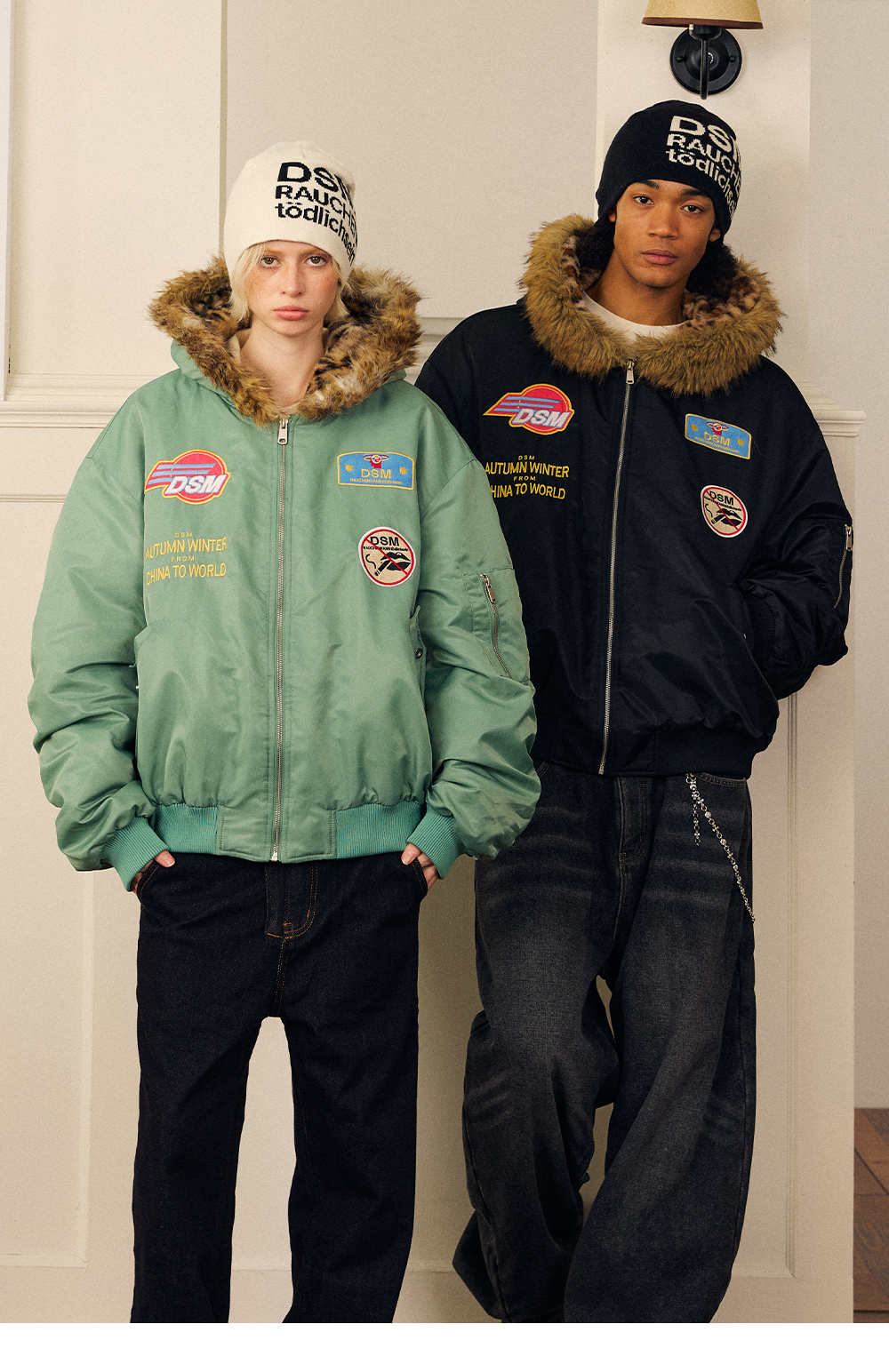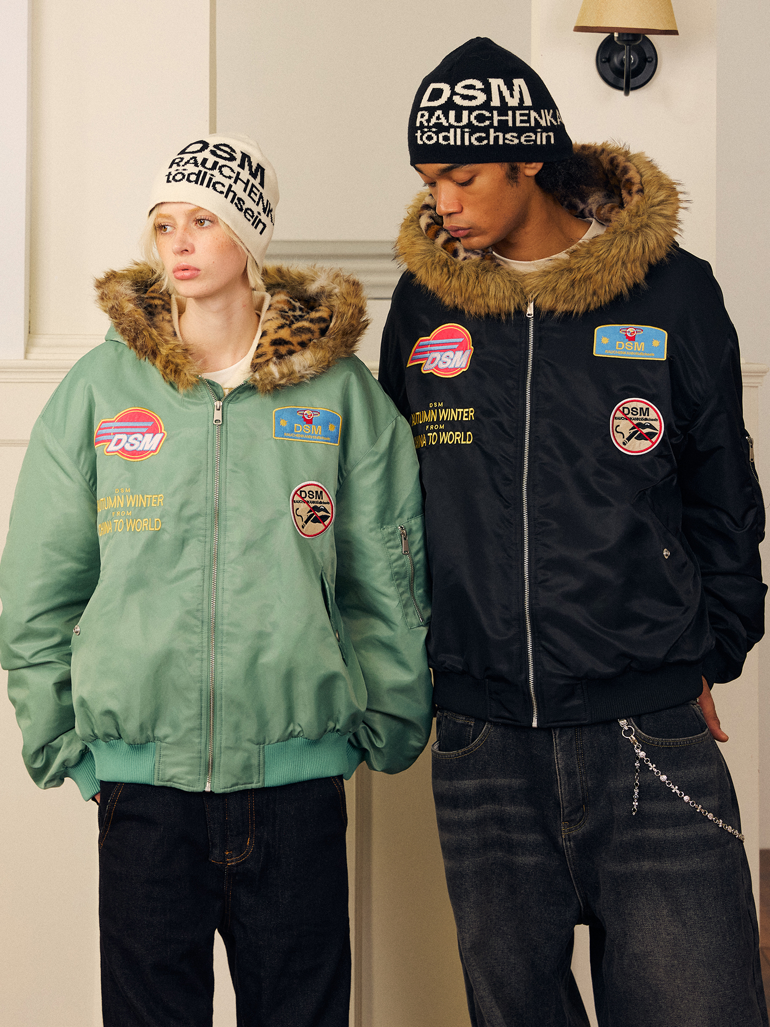 DONSMOKE Leopard Print Hooded Flight Jacket